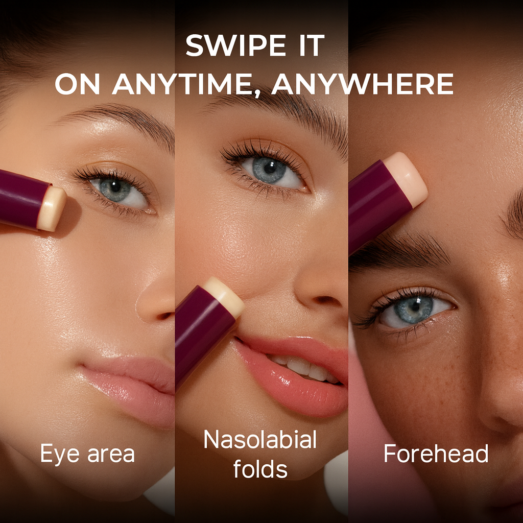 - Portable wrinkle care — your on-the-go, anti-aging balm in a sleek travel stick